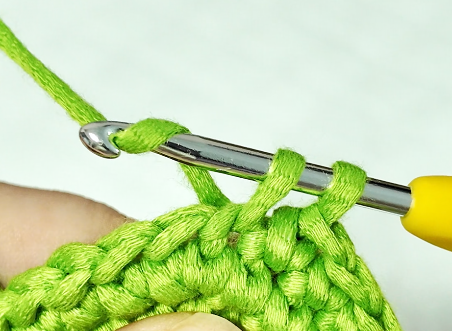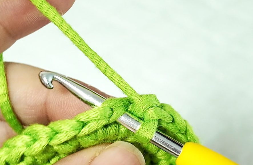 Wrap the yarn over the hook again. Then pull the yarn through 2 loops on the hook.