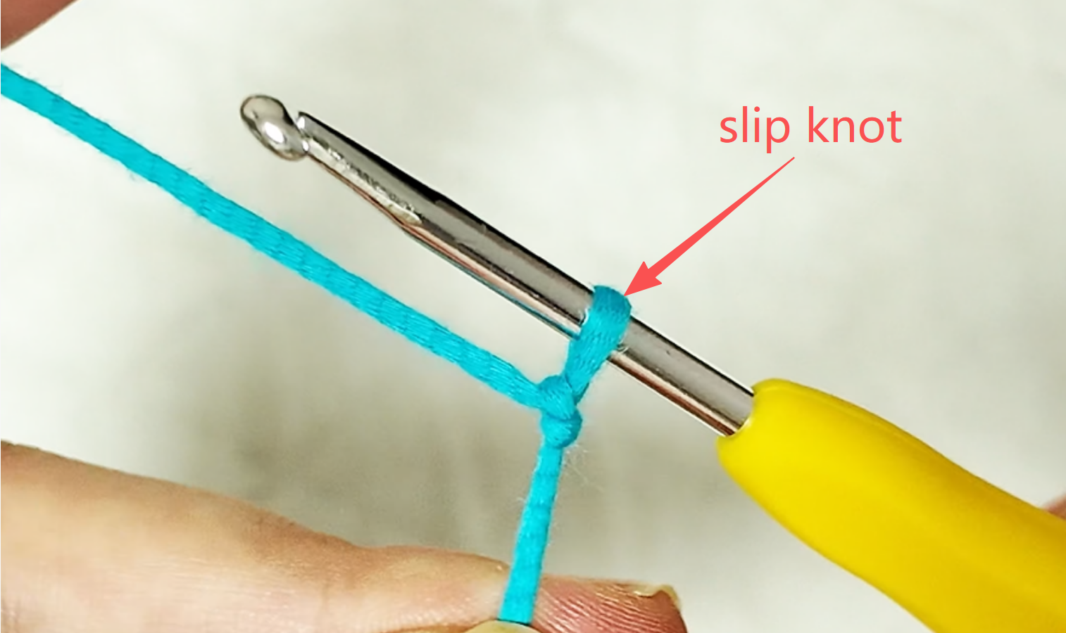 Firstly, we need to make a slip knot on a hook.