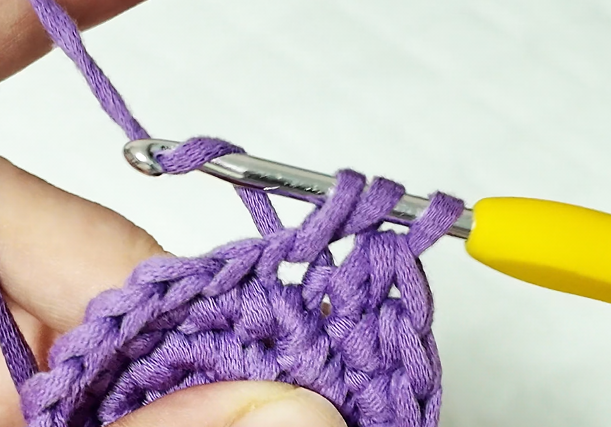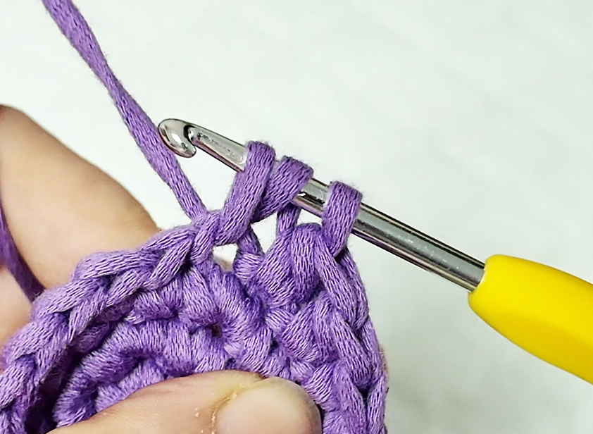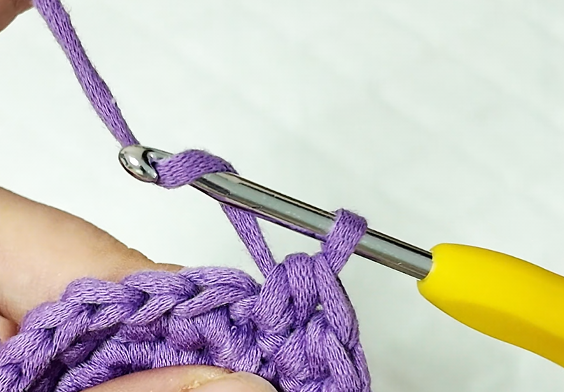 Pull the yarn through the stitch. There are 3 loops on the hook.
