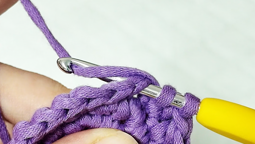 Pull the yarn through all 3 loops on the hook. Half double crochet is completed.