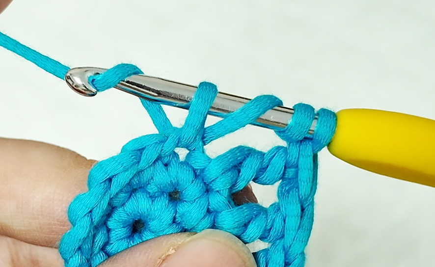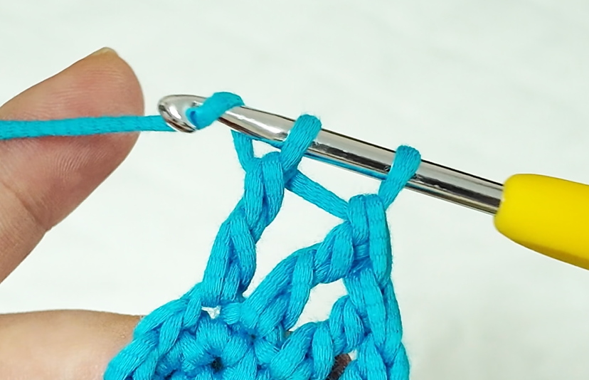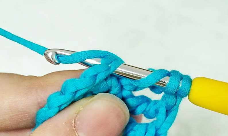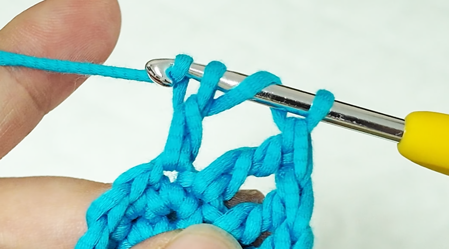 Treble crochet is taller than a double crochet. Yarn aroun the hook twice, and bring the yarn through the loops three times.