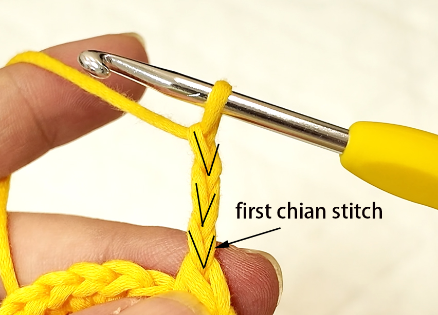 Make 3 chain stitches in total. Insert the hook into the first chain stitch.