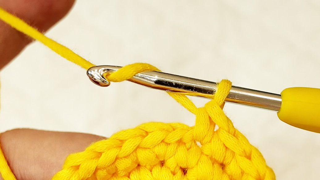 Yarn around the hook and bring the yarn through the loop on the hook, the first chain stitch is made.